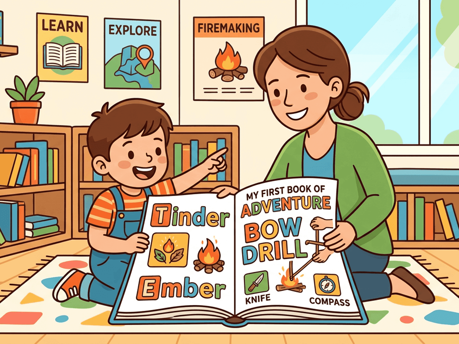 A friction kit where a cord-wrapped bow spins a spindle against a fireboard to concentrate heat in wood dust.